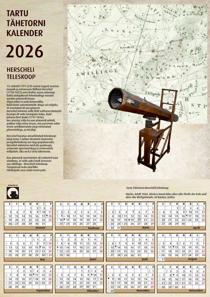 NB! Tõravere (Tartu)Tähetorni Kalender avaldatakse nüüd võrguväljaandena