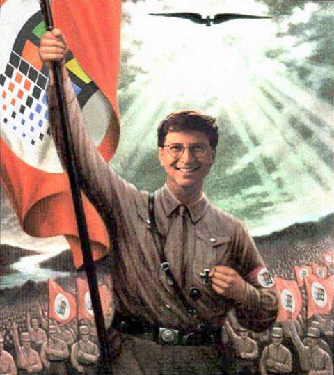 "Gill Bates = rahva raha ja kannatuste peal elav limane mollusk, kelle me (kui me ta kätte saame) jalgade all lödiks tambime nagu limased molluskid tambitakse..." Kui oli veerenud mõni päev, sõitis märatseva rahva hulka üks auto, sealt astus välja üks mees, siis veel teine mees, kes hakkas rääkima: