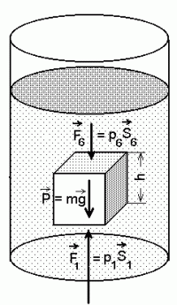 vedelikuosakest ja sellele mõjuvaid jõude. Tasakaalu korral