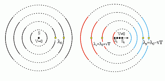 Seda muutust on lihtne leida. Liikumatu allika korral on lainepikkus