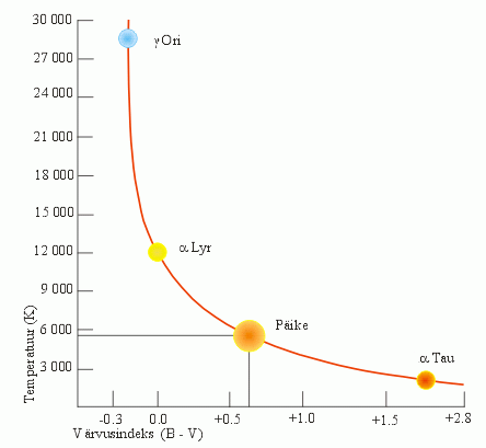 HeledusPimedal ööl tähistaevast vaadeldes märkame kõigepealt tähtede erinevat heledust. Juba vana-aja astronoomid püüdsid tähti heleduse järgi järjestada, tuues sisse tähesuuruse mõiste. Kõige heledamad olid esimese suurusjärgu tähed, siis teise, kolmanda jne. -- iga järgmine suurusjärk eelmisest poole tuhmim.Hiljem, kui mõõtmismeetodid täienesid, sai täpsustatud intervalliks 2,51 korda; hakati kasutama ka murdarvulisi ja negatiivseid tähesuurusi (1,2; -0,6). Kõige heledam tähtedest (Siirius) omab tähesuurust -1,46; palja silmaga on parimal juhul näha kuuenda suurusjärgu tähed; tänapäeva teleskoopidega saab Maalt vaadelda 24. suurusjärgu tähti. Nõrgemaid tähti on taevas rohkem, tähtede arv kasvab heleduse vähenedes kiiresti. Tähtede heleduste määrangud sõltuvad sellest, millise aparatuuriga heledust mõõdetakse. Erinevate numbrite (ja ka järjestuse) saamise põhjuseks on see, et eri tüüpi kiirgusvastuvõtjad on tundlikud erinevas lainepikkuste piirkonnas. Kui otsustajaks on inimene, tema nägemismeel, nimetatakse vastavat heledust (tähesuurust) visuaalseks. Kui mõõtmisvahendiks on fotoplaat, räägitakse fotograafilistest tähesuurustest. Heledust, kus võetakse arvesse kogu tähelt tulev energia, nimetatakse bolomeetriliseks heleduseks.