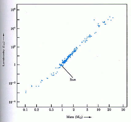 Joonis 2. Normaalsete tähtede mass-heledussuhe.
