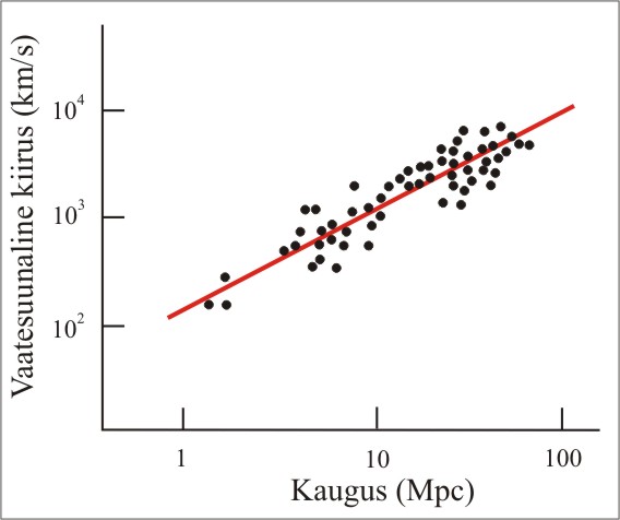 Hubble'i seaduse järgi on galaktikate kauguse määramine
