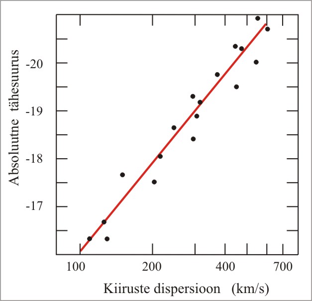 neutraalse vesiniku raadiojoone kuju järgi (nn. Tully-Fisheri seos).