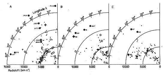 Joonis 3. "Apelsinilõik" Las Campanasest. 7 autorit, 12 434 galaktikat, 1996.