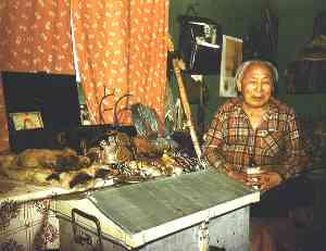 Demnime was perhaps the last Nganasan shaman who held traditional way of living in tundra. Photo (72K) by A. Lintrop 1977.