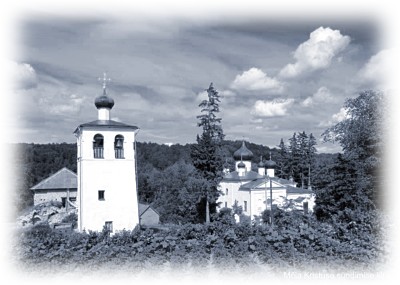 , kellatorn ja mungakloostri varemed Setomaal. Foto Arne Maasik 2008.